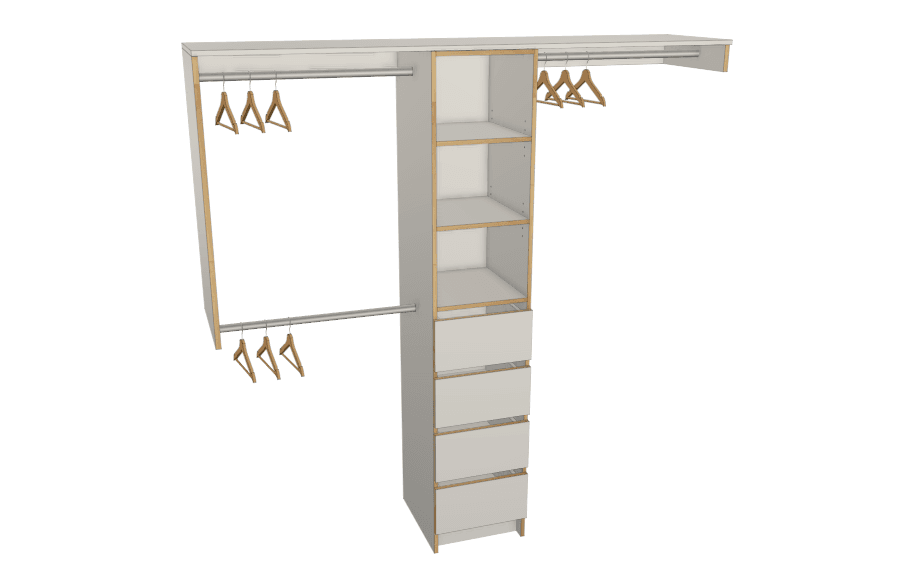 Quad Drawer Two Single Hanging Spaces Wardrobe